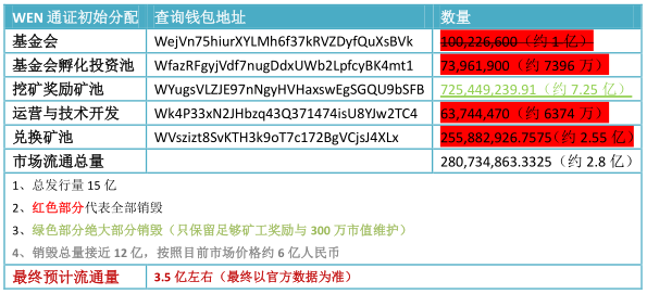 第一是购买IPFS矿机所使用的10%的Wen不再返还给矿机主,其中85%公开销毁,另外15%作为奖励,以WEN POINT方式存入徽章系统,365天后1:1释放成Wen;