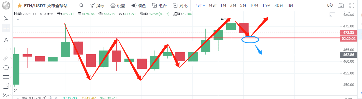 彤欣言币:11.14比特币以太坊行情分析攻势减缓谨防空头反扑