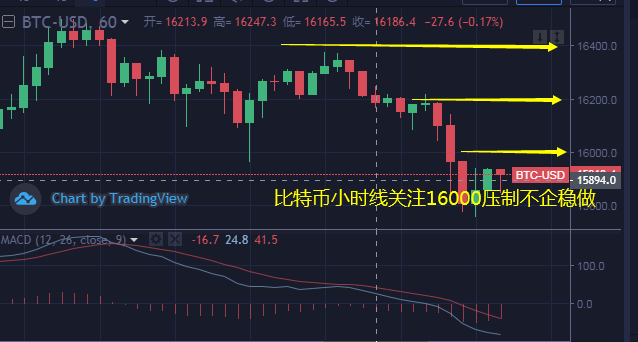 策略二:比特币企稳16000多单买入,止损150个点,目标16300-16400.