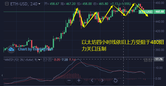 策略二:以太坊反弹至470-468做空,止损4个点,目标462-460