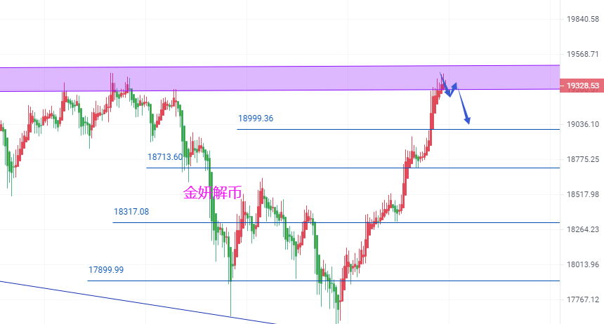 比特币在周末的这波上涨之后,对于市场散户来说20000关口已经成为话题的热潮,是否真的能突破20000大关,金妍发表一下个人的观点,近11月以来比特币涨到19888为何迟迟未破,我们都知道比特币会涨到20000,狗庄也知道最终会涨20000,狗庄也知道我们知道会涨20000,但是始终没有突破20000大关,目前从周五晚上开始17571涨幅到19380一线,接近1800个点左右,现在的走势是日线布林线的上下轨道形成了一个强大的阻力和支撑,如果没有大的外部条件影响,比特币后续大概率会在这个区间进行大级别的调整,所以操作上金妍建议短期不要盲目追涨了,稳健等一波回调后,再行做多。上方压力关注19500-19600,下方支撑关注19000一线。