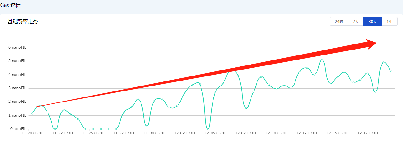 Filecoin的gas是近期被纷纷讨论的“热词”(购买满存算力矿机咨询陈生:135-9034-9103微电),之所以如此备受关注,是因为从11月7日的100attoFIL飙升到如今的3.601nanoFIL(nano是10的负9次方,atto是10的负18次方),仅一个月左右的时间,gas费就飙升了360.1万倍。如若gas是一个投资标的,那这个表现绝对称得上一骑绝尘,只可惜gas费更像是一种“燃料”,价格越高,挖矿的成本就越高,高昂的gas费往往让矿工有苦难言。