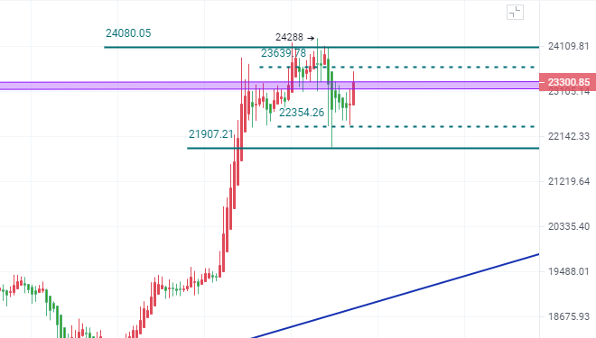 2、上方23900不破做空,23900-23700-23500分批空,止损24000之上,目标23300-23100-22900