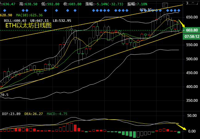 ETH(以太坊)实时操作建议:反弹在612做空,止损616,目标605附近;
