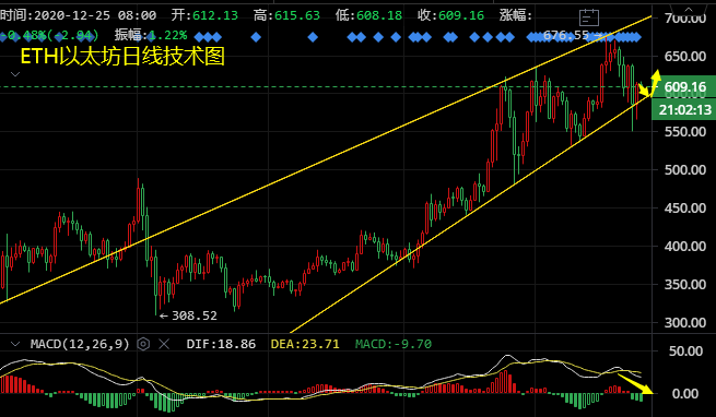 短期上方阻力位:615/618 短期下方支撑位:602/596