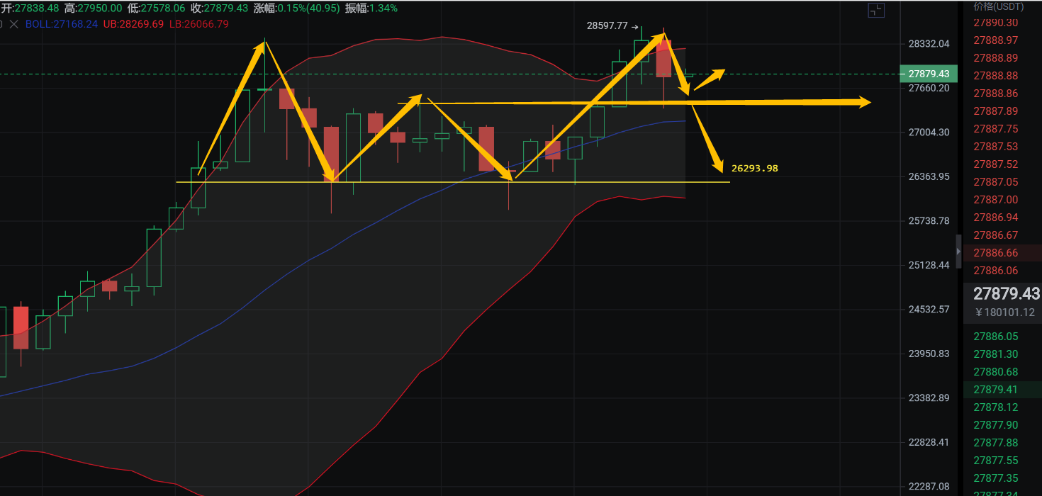 当前比特币价27879附近,傍晚一波涨势再次创下了历史新高,随后呈现震荡下跌趋势,我们可以发现每次大起必有大落的,在日线中盘面均线走势非常良好,而外界机构及散户们仍然十纷纷看好,可以说比特币未来可期,而今日灰度各币种持仓均量有所下降,市场的判研是该持仓量的降低、或是管理费,减少数量很小,不用过度解读。目前币圈高昂的情绪下,后市如是行情在28000上方稳企,对于三万还是非常可期的。