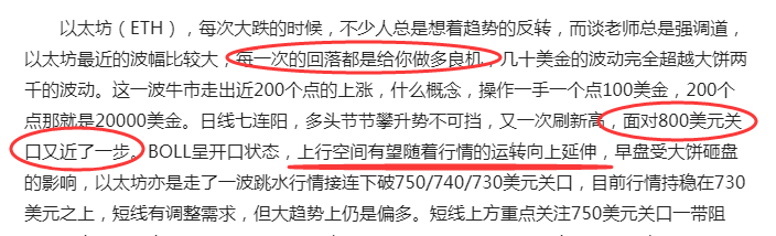 以太坊,我们预期的中长线目标800美元关口亦是顺利到达,在比特币大涨的影响之下,两者双双迎来历史性的牛市,这样的趋势之下,技术面形态完全没有可参考的价值。牛市不上车更待何时,这般疯牛的形式之下,唯有资金大小才是显示你勇气的时候,撑死胆大的,饿死胆小的,戏谑观望的。大胆的勇敢的跟着行情走,分批建仓,分批获利离场,反复循环,利润数不胜数(小资金小仓位皆可适用)。对于手上持有空单的朋友,面对多头如此大的冲击,笔者建议你放弃抵抗,留的本金在,不怕没柴烧,跟对人,翻仓也是一时之事。主流币纷纷大涨,目前最幸福的人应属于现.货投资者了,回调继续买买买,中间商赚差价,目标继续上看。