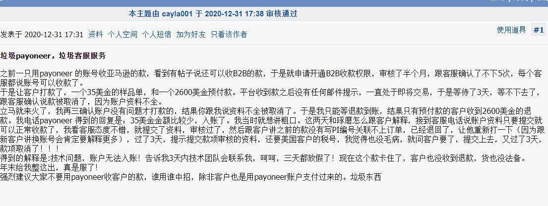 P卡一般的定位是电商平台提现,这是他的强项,B2B业务他们叫WPS,这是以虚拟户的形式介入的,他的美元离岸账号是德意志银行美国信托公司(Deutche Bnak Trust Company America的账号, 虚拟户做离岸B2B收款最大的困难就是太麻烦了,提交一大堆东西,包括发票,聊天记录,物流单据等,而且会有像你这种莫名其妙的退款, 主要原因就是因为本身不是银行,很多时候自己没有决定权,他们只是中介而已。