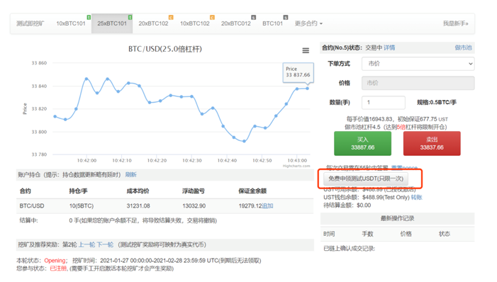 交易前,必须点击页面“挖矿及推荐奖励”中的“开启挖矿”,若不开启则交易无效。