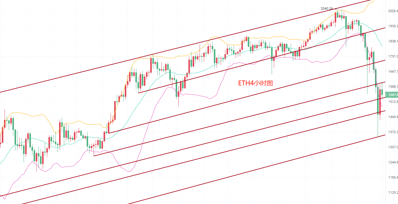 姨太蹦极,逼近1350大关,回顾一下17年比特币1400暴跌到900跌幅,65%后暴涨到20000美金,21年姨太2040暴跌到1350附近一样逼近65%跌幅,会不会暴涨到20000美金呢,具体会不会像17年牛市一样我们拭目以待,跑偏了,回归正题,大多数币友做单不带止损导致越亏越多,一味的想要抄底做多,结果一路损,还一路补多,最终损的一无所有,辰逸建议大家自己操作的时候不要有顾虑,严格带好止损,落袋为安,毕竟专业人才能做专业事,业余操作还是要严格按照策略来,我们先看以太K线蹦极