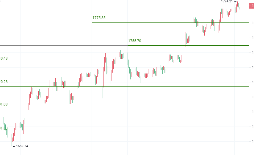 下放1710不破,建议1715-1720多,止损十个点,出场参考1740-1755-1775,破位看1795