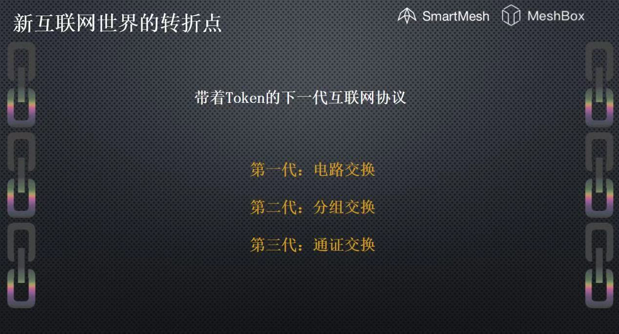 1964年定义的Packet Switching(分组交换)是信息互联网的交换模式,而王启亨在2017年定义的Token Switching(通证交换)便是价值互联网的交换模式。在价值互联网里每个数据都有确权和价值,因此不再是简单的信息Packet的交换,而是伴随着数据的价值Token通证交换。