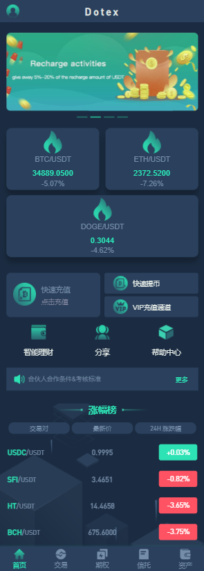 DOTEX 交易所为全球数字资产交易用户打造管理、交易、投资等最方便的一站式服务, 专业老师带单指导培训下,形成包括周期合约,永续合约,杠杆合约,DEFI 等在内的合约 交易生态的价值闭环。此外,DOTEX 交易所还以社区力量为基础,以用户利益为根本,逐 步过渡到全球社区完全自治型的区块链数字资产融通生态,与社区和用户实现共享、共有、 共治。