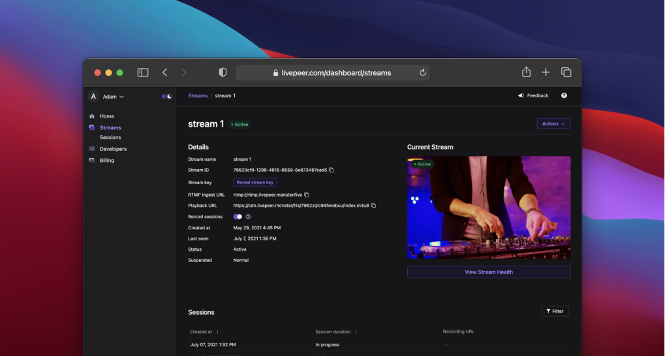 7 月还标志着全新 Livepeer.com 仪表板的首次亮相,该仪表板经过团队不断打磨,旨在让广播公司可更轻松地查找和管理其流媒体并跟踪活跃流媒体的性能。