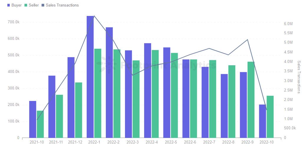 这个指标告诉分析师,购买或出售一个收藏品或在一个市场上的独特钱包地址的数量。