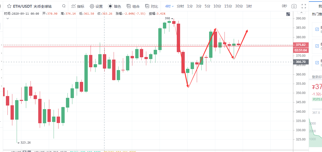ETH行情分析:四小时线看,布林带缩口偏上行,k线运行在布林带中轨上方,处于一个横盘整理的状态。MACD双线粘合在零轴上方,小时图来看,布林带缩口运行,5日均线上穿10日均线于376一线运行,币价在中轨附近支撑企稳,附图MACD双线粘合,多头能量持续减弱,综上所述,彤欣认为大趋势依旧看多。晚间布局彤欣建议企稳375做多。