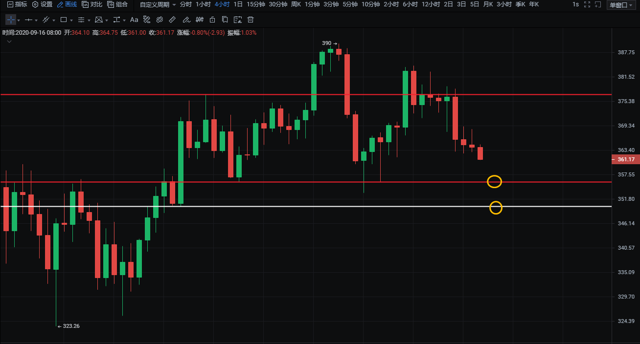 2:375-370附近空,止损5个点,目标365-360