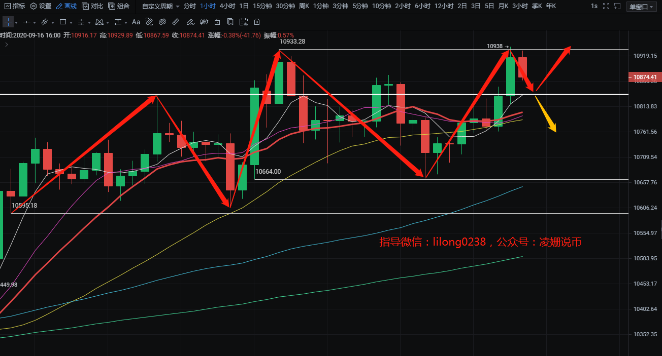 比特币小时级别来看价格早间回踩至10660附近平台支撑开始上行,目前价格于10850上方盘整,多头有压盘迹象。价格上行至昨日高点附近受阻。幅图指标MACD于0轴上方有金叉迹象,RSI指标三线拐头向下运行,KDJ指标三线向下散发。上方压力位11150-11000,下方支撑位10830-10700。