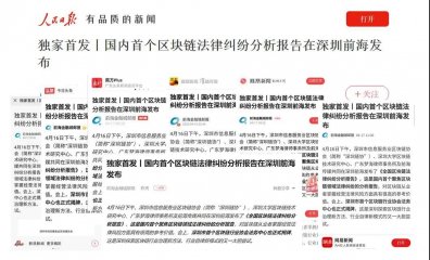 4月17日,人民日报、腾讯新闻、前海传媒、搜狐新闻、百度APP、新浪、网易新闻、南方Plus、前海金融城邮报、今日头条、一点资讯等主流新闻媒体纷纷转载了深圳市信息服务业区块链协会、深圳大学区块链技术研究中心、广东梦海律师事务所、前海传媒等联合发布区块链法律纠纷