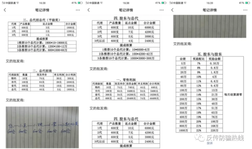 “我们招收的代理分为四个等级,每个等级的拿货价格不一样。”该团队某代理告诉李旭反传销团队,该团队设置了“特约”、“市代”、“省代”、“总代”“股东”五个代理模式,需要投资的金额分别为740元、6400元、16200元、26400元(26400元以上,股东分为不同级别有5万级、10万级、20万级等)。最高级别“股东”和最低级别“特约”,单支产品间的差价能达到40元。