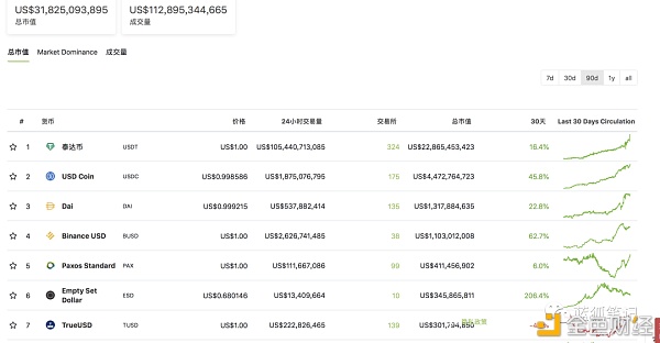 OCC并没有说明银行应该采用哪些公链基础设施,成为哪些公链节点。在所有智能合约链中,就目前而言,以太坊是稳定币的最大结算层。目前稳定币整体市值超过300亿美元,其中绝大部分稳定币都运行在以太坊上。