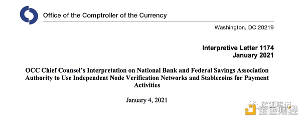 OCC是美国各银行的最大监管机构,其全称为Office of the Comptroller of the Currency,它于1月4日表示:它允许银行成为区块链节点以及使用稳定币进行结算,也就是说,OCC许可其银行将公链作为结算基础设施。