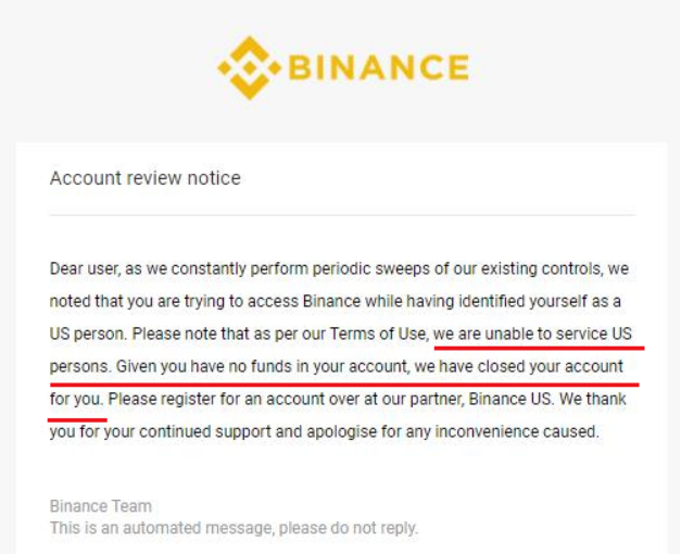 在美用户收到了币安主站的“封号“通知