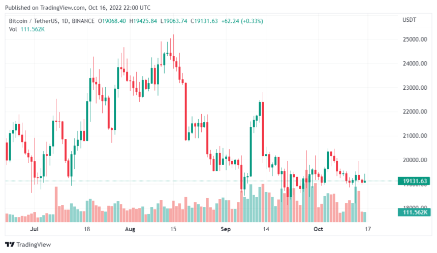 比特币在突破 19,000 美元后横盘整理 Tradingview上的 BTCUSDT