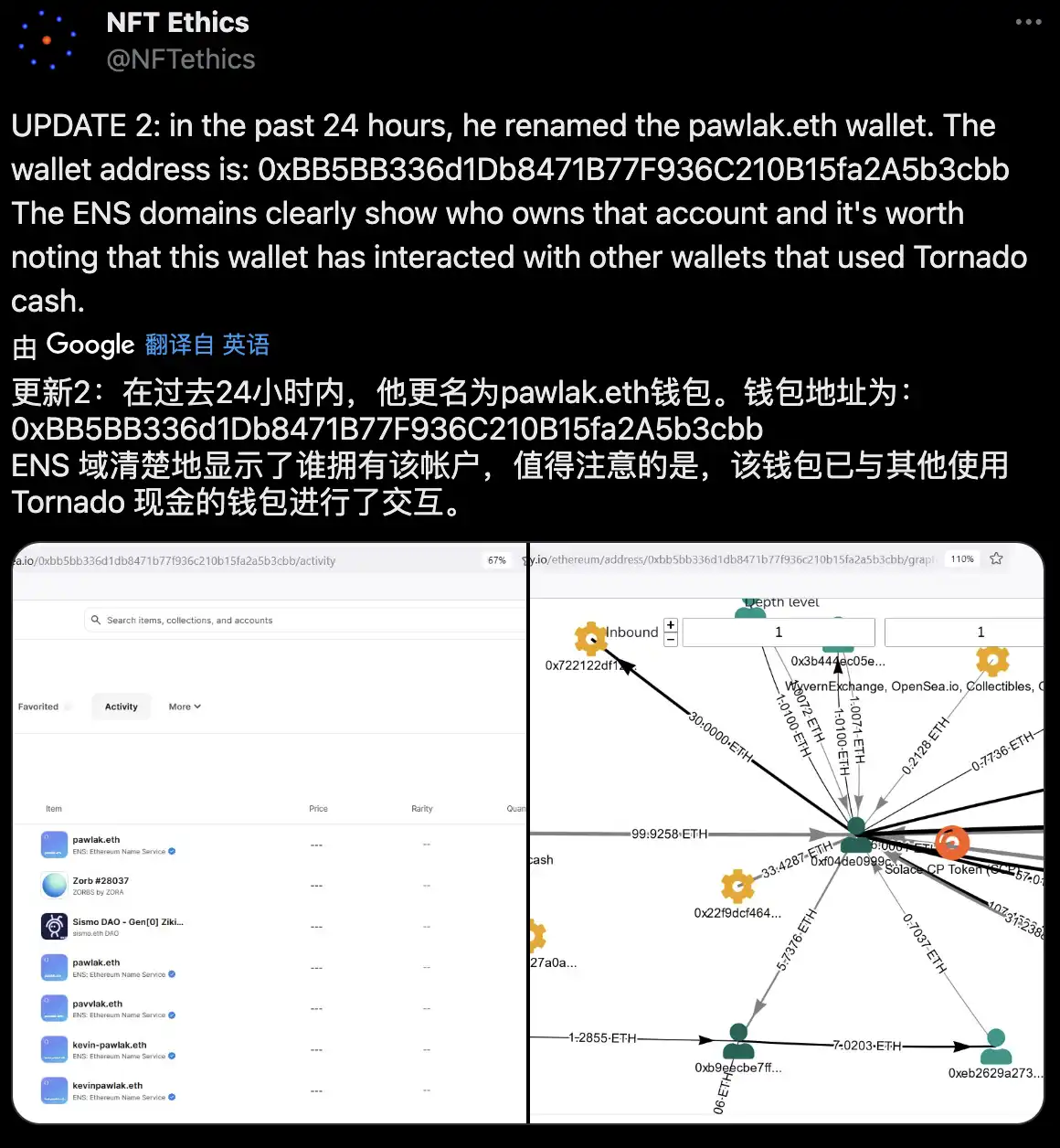 随后,NFT Ethics 表示,很多人向其证实 Sisyphus 确实是 Kevin Pawlak(他的身份在小圈子里众所周知)。在文章发布 24 小时内,将 pawlak.eth 的解码地址进行更改,且 Sisyphus 拉黑了 NFT Ethics。