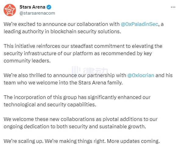 Stars Arena:已与区块链安全专家合作,增强技术和安全能力