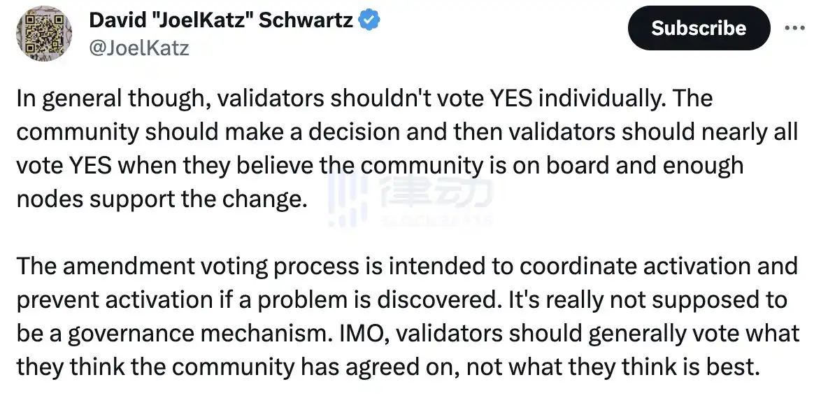 Ripple 首席技术官 David Schwartz 在社交媒体上号召社区就 XRP Ledger (XRPL) AMM 功能采用达成共识,特别是 XRPL 验证者要投票支持。他表示,如果大多数验证者支持修正案,它将会在两周内实施,但目前没有验证者参与投票。