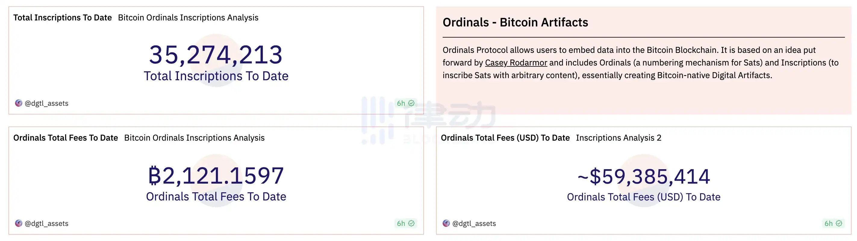 Ordinals 铭文铸造量突破 3500 万枚,交易费超 2000 枚 BTC
