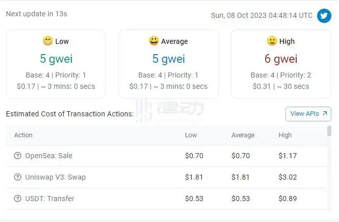 以太坊网络 Gas 费降至 5 gwei