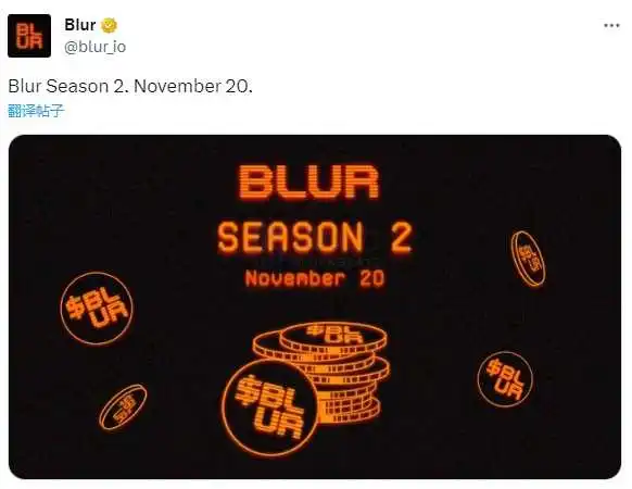 Blur 于社交平台发文:「Blur Season 2. November 20.」,暗示 Season 2 将于 11 月 20 日迎来重要时间节点。