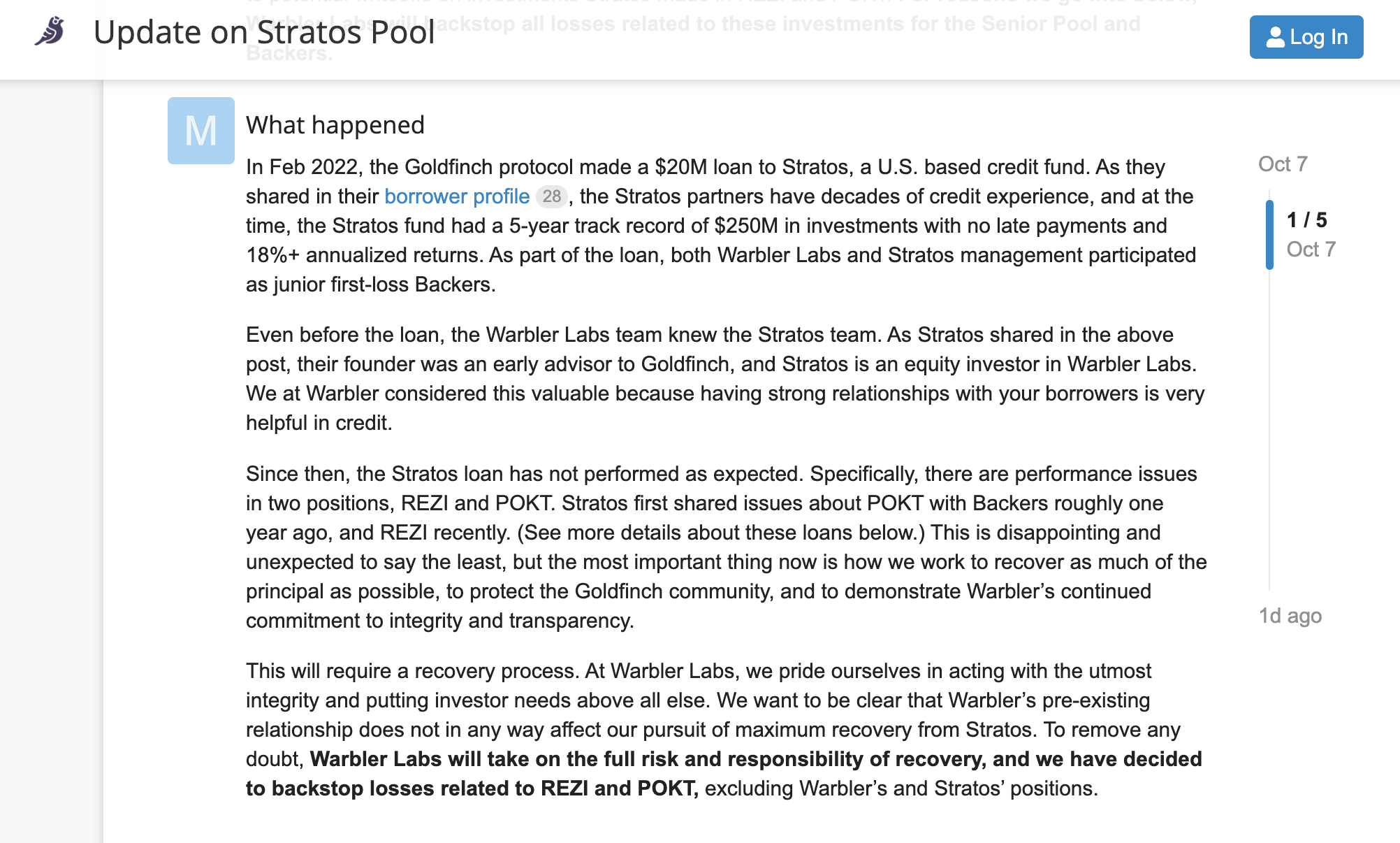 · 社区评论:Goldfinch「暴雷速度比 P2P 快」