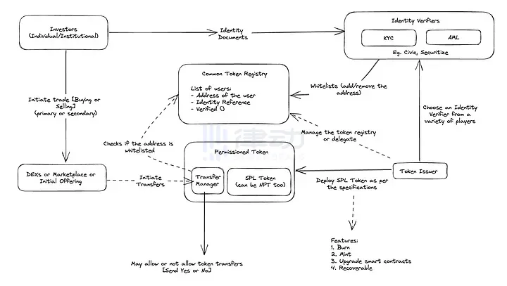 Homebase 的创始人 Dom 在 Solana 论坛上发起了这个急需的讨论,巧合的是,我也有这个想法,并准备了一个「许可的 RWA 代币」的流程图。这是我的设想: