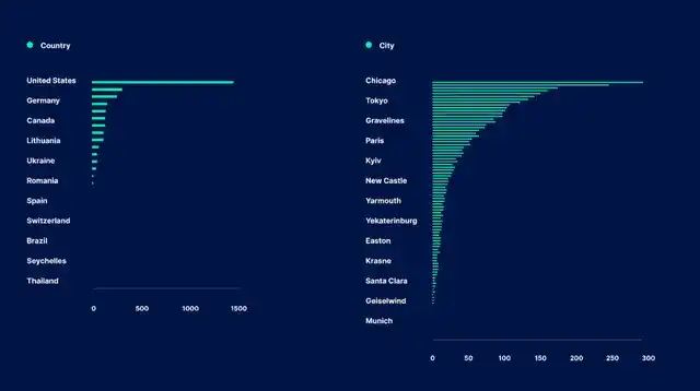 Solana 目前共有 2,919 个节点,分布在全球 31 个国家、211 个城市。按节点数量排名的国家/地区排名第一的是美国,其次是德国、加拿大和立陶宛。美国拥有 1,370 个节点,几乎占节点总数的一半。节点集中在美国可能会带来轻微的风险,但值得注意的是,节点分布在美国不同地区的验证者集群中。