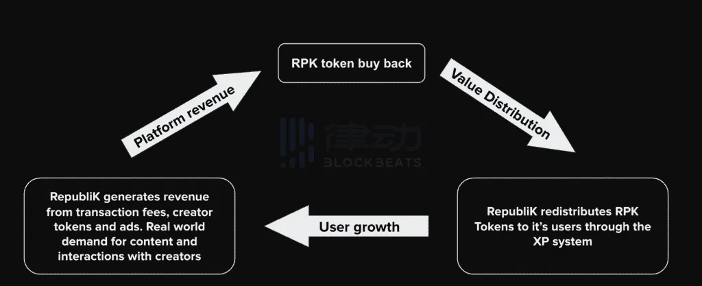 最后,平台将使用一部分在平台之外获得的法定货币收入来购买 RPK 代币,并将这些代币分发给生成变现内容的创作者。