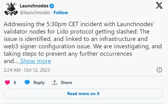 在几小时后的帖子中,Launchnode 表示,削减事件是由于基础设施和签名者配置问题而发生的。
