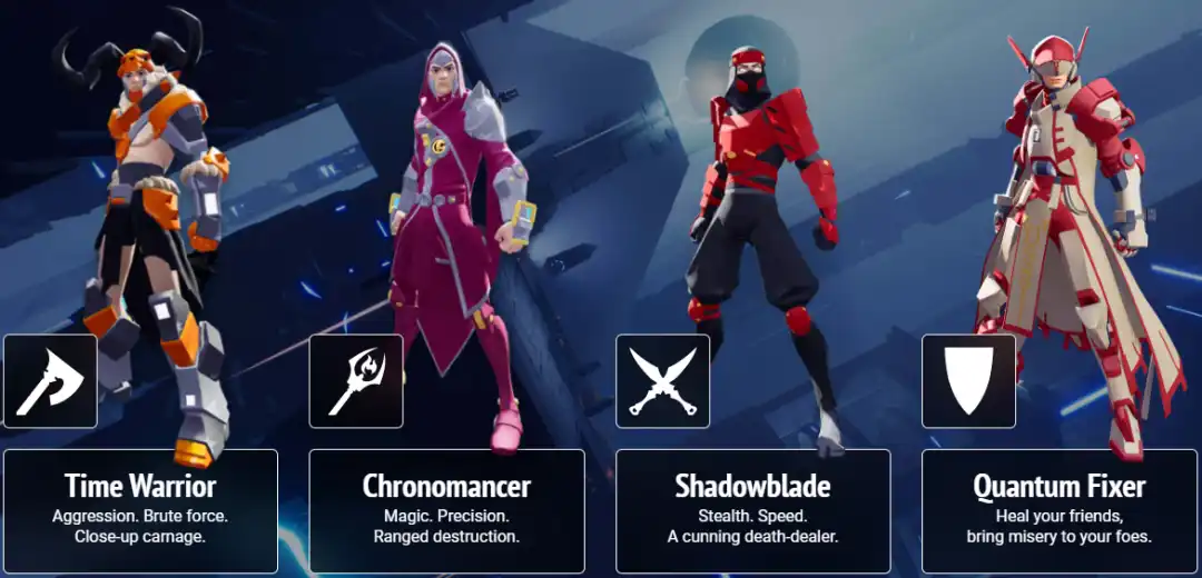 • 时间勇士(Time Warrior):擅长近距离战斗,适合作为坦克;招牌技能包括旋风斩和无敌怒吼。