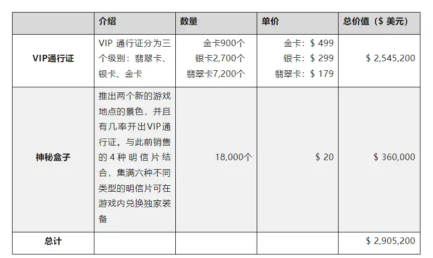 表 2-5 Open Loot 神秘礼盒假期特卖(圣诞节假期,春节假期)市场销售情况