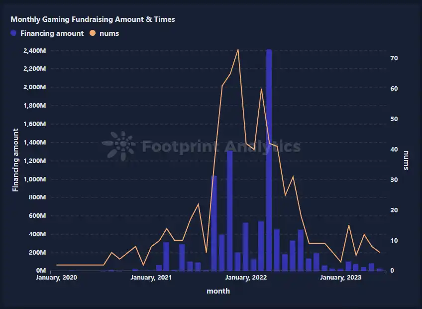尽管过去 1 年多来,链游赛道的融资额出现了明显的下降,但我们也可以发现活跃链游数量并没有出现显著的下降,甚至还在缓慢上升,这意味着整个赛道目前仍然维持着成长于发展,并且在熊市当中仍然具有一定的韧性。