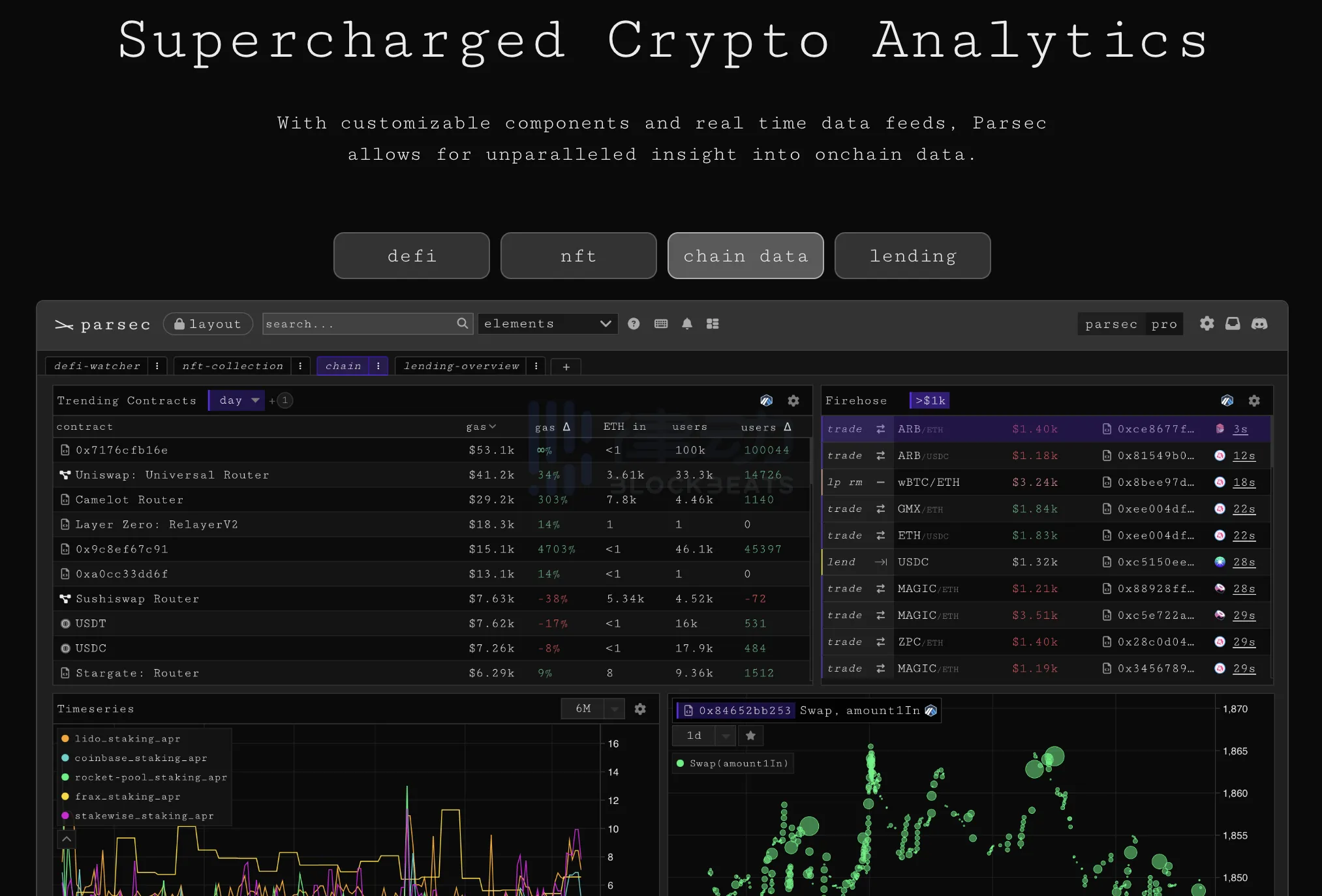 Parsec 创始人兼首席执行官 Will Sheehan 近日表示,Parsec 的竞争优势在于其最大程度的可定制和模块化仪表板:「我们拥有最好的数据可视化——我们为用户提供超过 110 个可定制的组件,而且都是实时的。我们的数据通过仪表板和可视化进行共享,交易者可以理解并可以快速采取行动。」