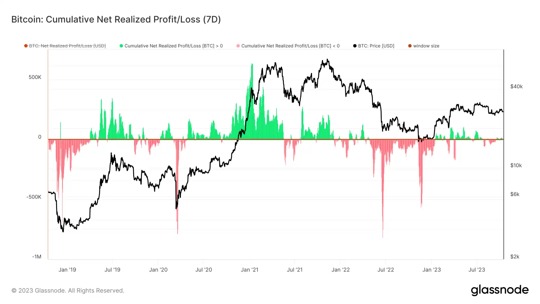 (下图 已实现盈利亏损抛售⽐例积累量)