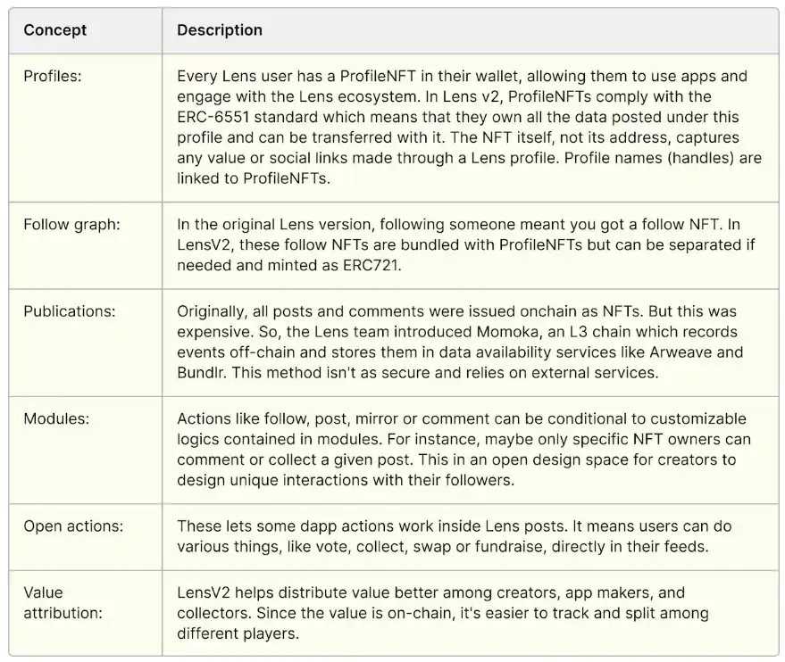 作者精选的 Lens 概念。该列表并不详尽。可访问 Lens 文档 https://docs.lens.xyz/v2/docs/what-is-lens。