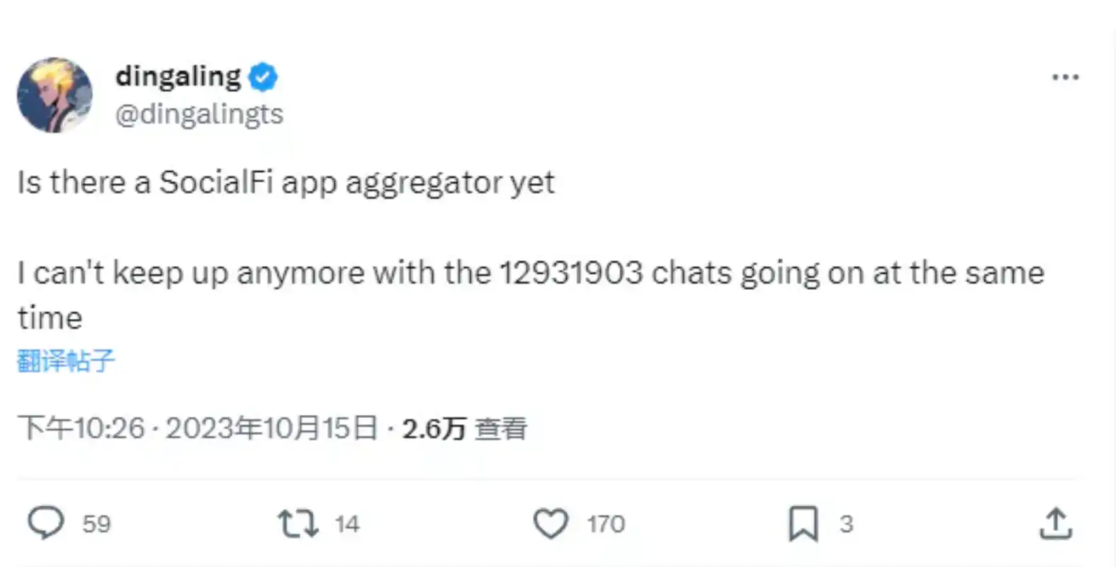 NFT 大佬 dingaling 发推感叹 socialfi 仿盘太多