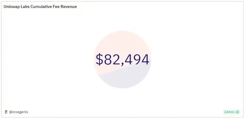 据 Dune 数据显示,Uniswap 前端交易费用首日(24 小时)录得 8.2 万美元。
