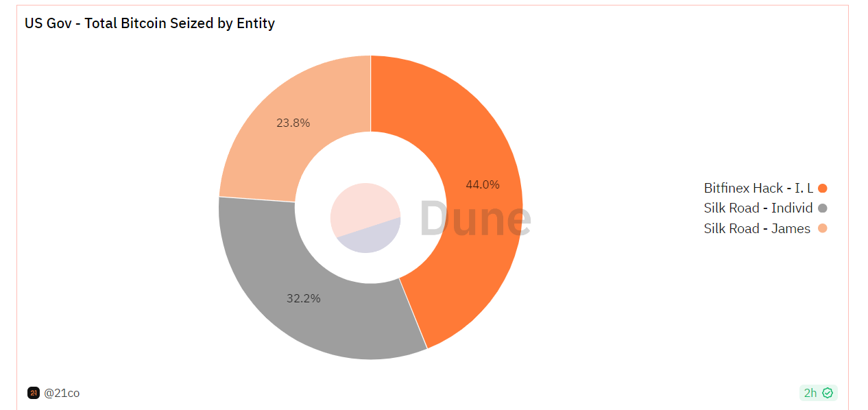该分析追踪了与2020年以来三起最大的BTC扣押事件相关的美国政府钱包的比特币流动情况,即2020年11月丝绸之路扣押的69,369 BTC、2022年1月Bitfinex黑客扣押的94,643 BTC和2022年3月James Zhong扣押的 51,326 BTC。