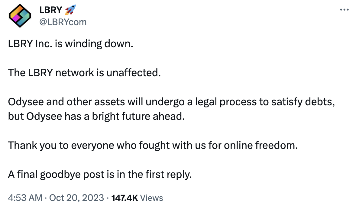 两年半诉讼、局势反复、债务高企,LBRY Inc. 最终选择清盘