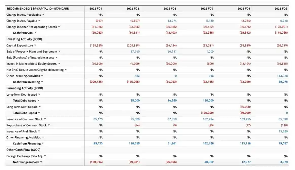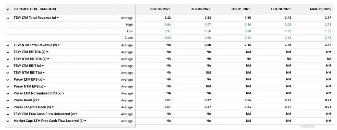 从 Marathon 的现金流可以看出,现金的来源完全来自融资,2022 年 Q4,公司的营运现金流为-92mln, 投资现金流为-22mln, 融资现金流为 163mln, 致使公司还有 48mln 的净现金流可以应对下一季度的利息税收等,融资带来的现金流完全来自于普通股增发,不断发行股票,市场可能会降低对公司的估值,从而导致 Marathon 在未来筹资时面临更高的资本成本。另外发行更多的普通股可能会导致每股收益(EPS)下降,因为盈利要分配给更多的股东,这也会对 Marathon 的估值产生负面影响。